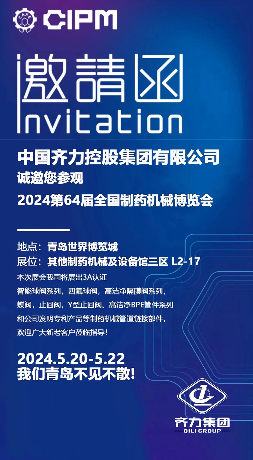 齊力參加2024年第64屆(2024春季)全國制藥機(jī)械博覽會(huì)